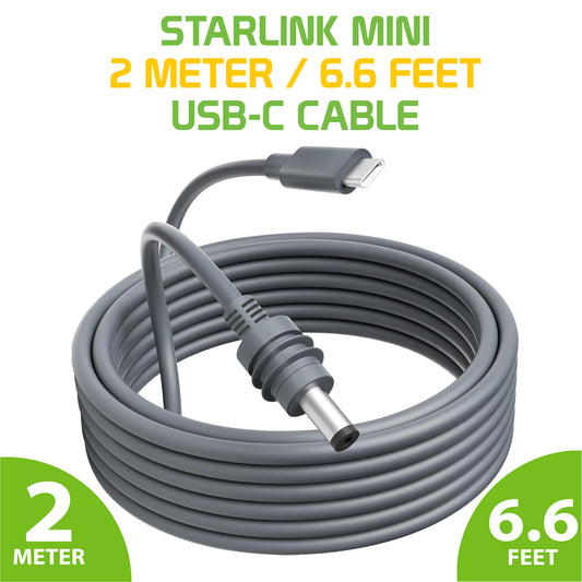 DASTRMINI2M - 2-Meter / 6.6-Feet Starlink Mini USB-C to DC Power Cable Cord 100W Input USB Type C to DC Cable, DC Power Cable Direct to USB-C for Starlink Mini Work with 100W+ PD Source Waterproof 18AWG