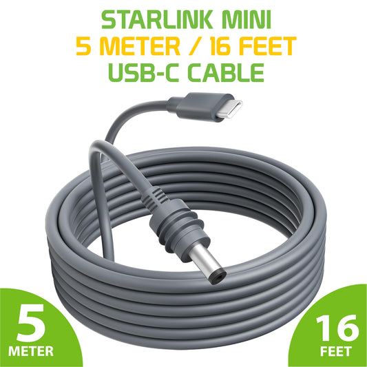 DASTRMINI5M - 5-Meter / 16-Feet Starlink Mini USB-C to DC Power Cable Cord 100W Input USB Type C to DC Cable, DC Power Cable Direct to USB-C for Starlink Mini Work with 100W+ PD Source Waterproof 18AWG (Copy)