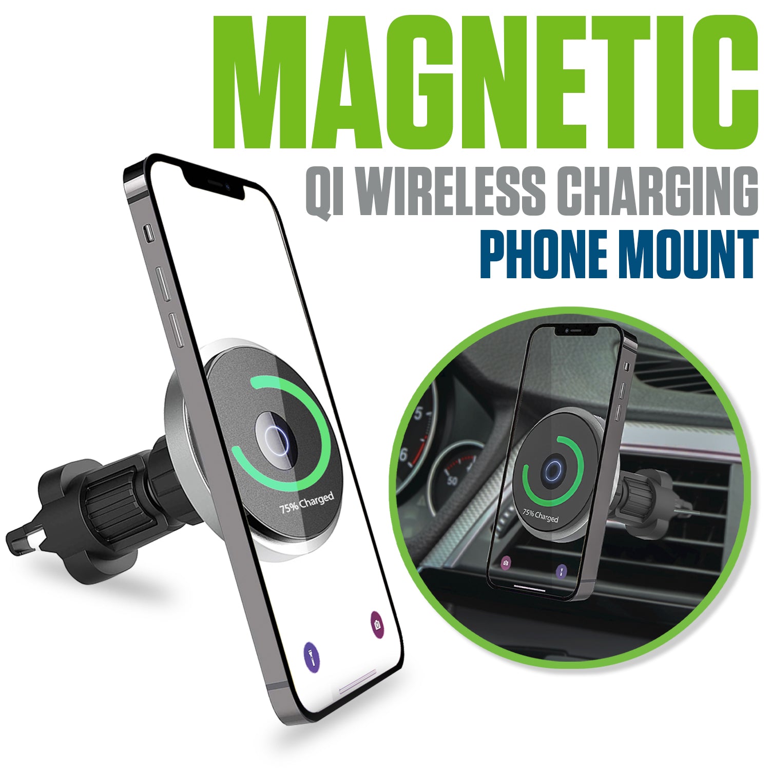 PHMAG12 - Cellet Inc. Magnetic Wireless Car Charger Mount, Fast Charging MagSafe Compatible Phone Holder for iPhone 16/15/14/13/12 Series - Air Vent Mount with Expandable Hook & Adjustable Head