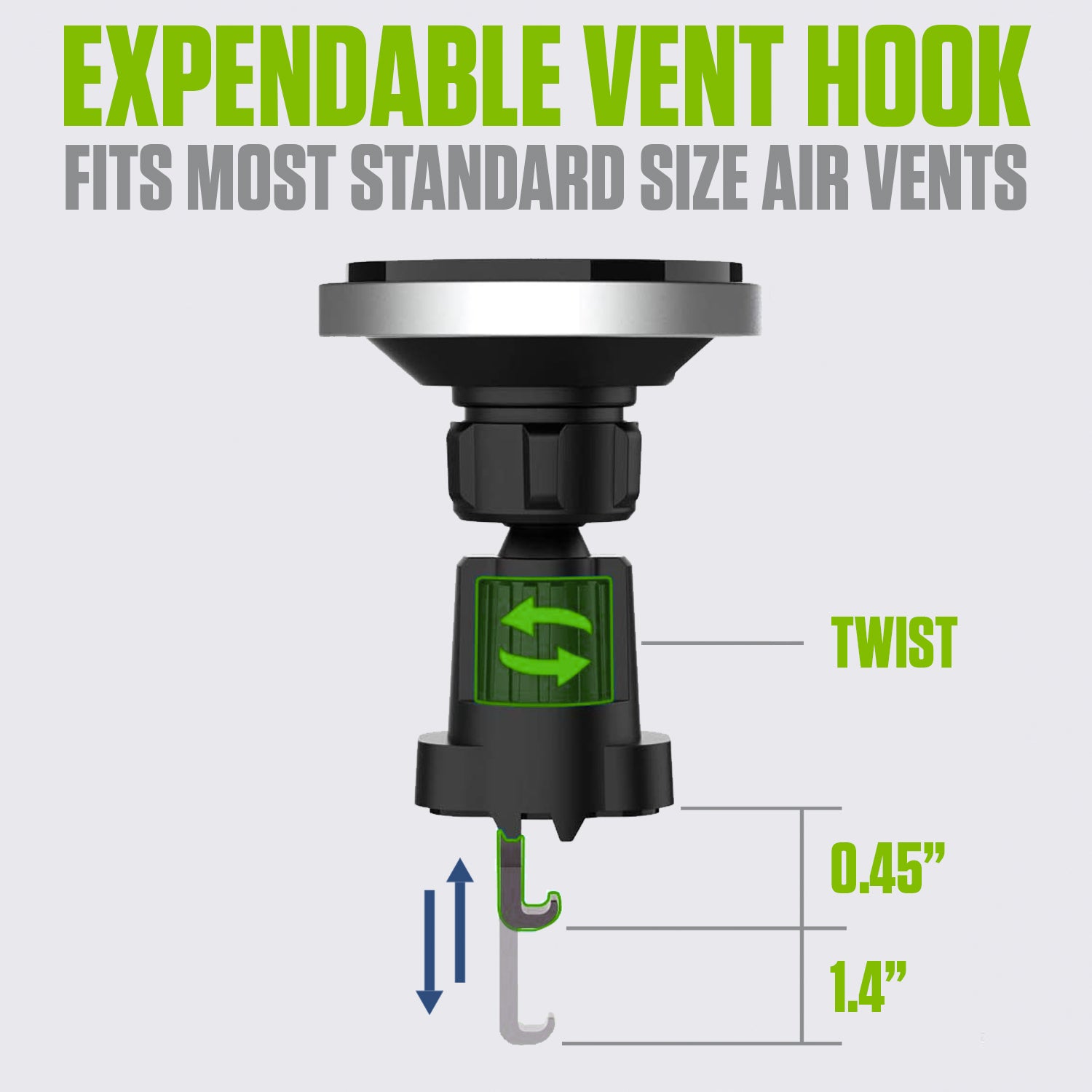 - 🚗 Universal Vent Fit – Expandable hook fits vents from 0.45"–1.4".